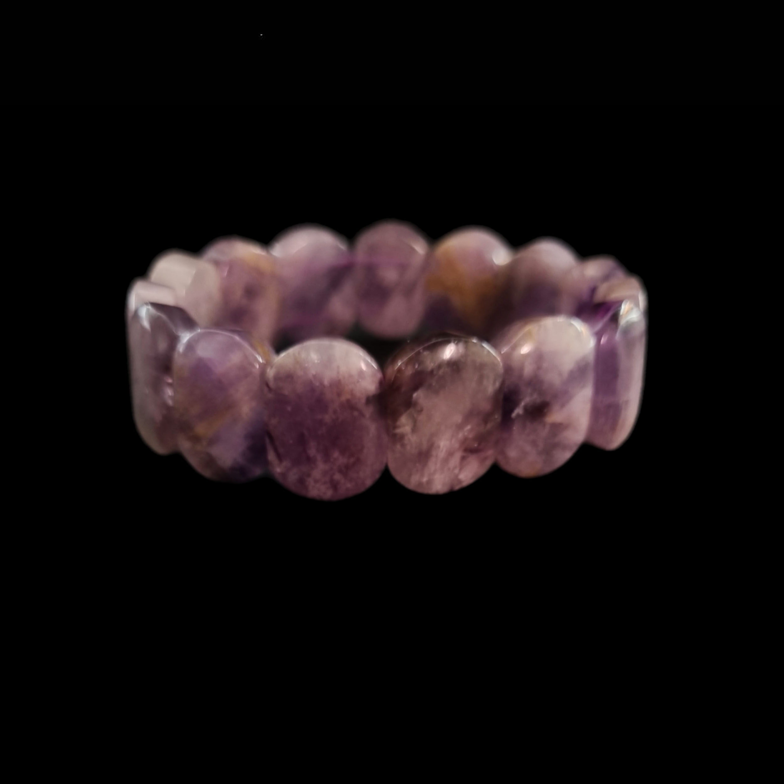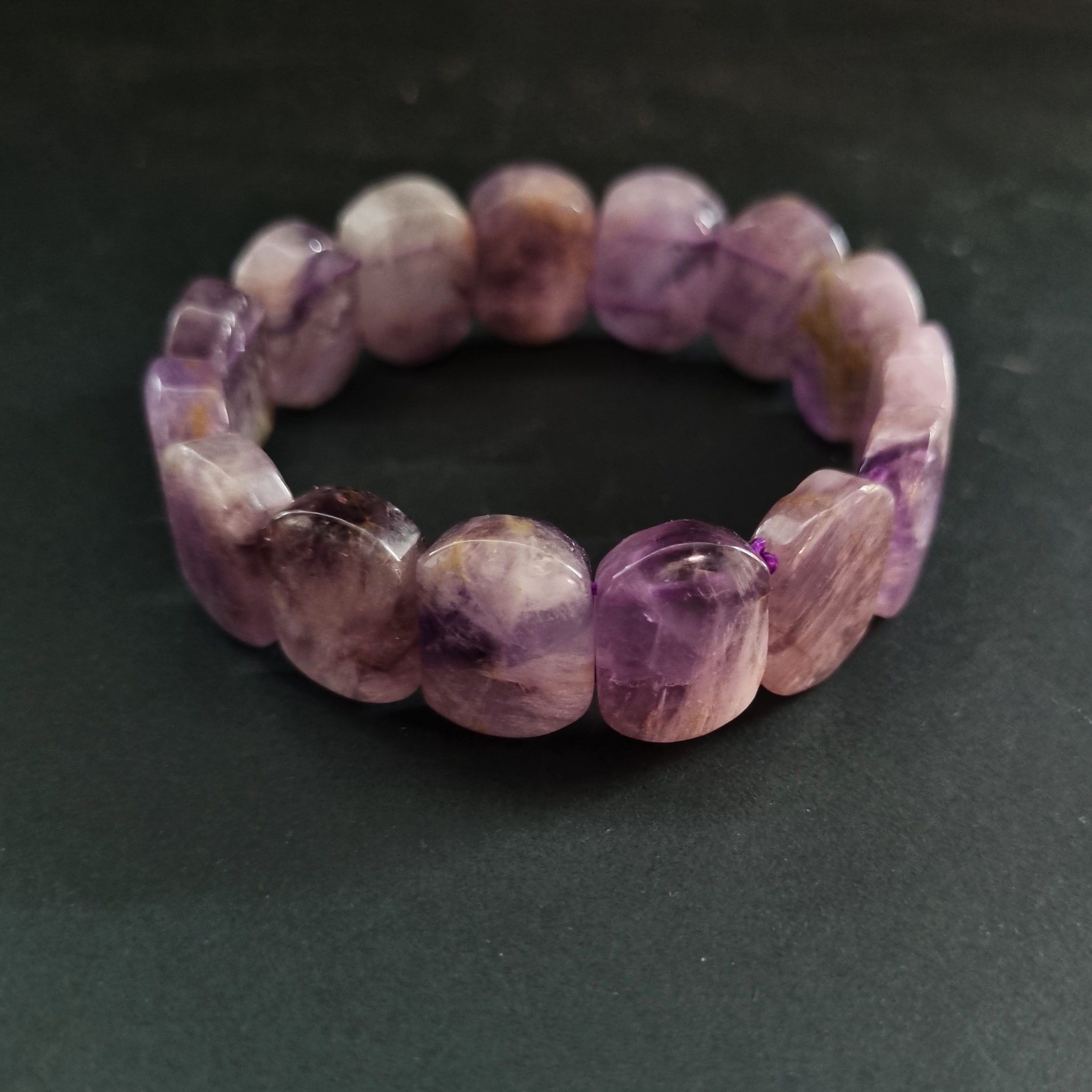 دستبند سنگی زنانه مردانه آمیتیست طبیعی تراش هنر دست عقیق ایران می باشد که بصورت دستبند کشی درست شده است.از خواص سنگ آمیتیست می توان به افزایش انرژی مثبت، تسکین استرس و اضطراب، تقویت حافظه و تمرکز، بهبود خواب، بهبود هماهنگی عصبی عضلانی و حفظ تعادل احتمالی اشاره کرد؛ همچنین، آمیتیست به عنوان نماد صلح و آرامش شناخته شده است و به دلیل رنگ بنفش آن، معمولاً با فرایندهای روحانی و متافیزیک در ارتباط است.ابعاد2در1در0.5سانت و قطر دستبند 7سانت و طول15سانت وزن47سانت می باشد.