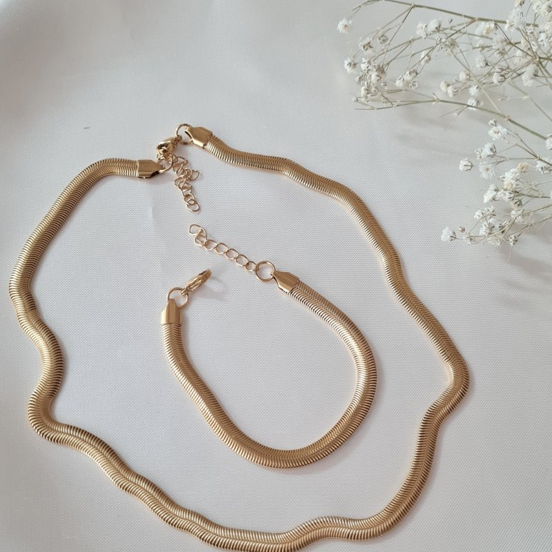 این محصول قابل استفاده برای بانوان و دختران خوش سلیقه است. این نیم ست ماری نسبت به دیگر نیم ست های ماری بسیار بسیار نرم و انعطاف پذیر است . این نیم ست از جنس استیل از محصولات استینلس استیل است. استیل فلزی بسیار مقاوم است. هیچ گونه حساسیتی ایجاد نمی کند. ثبات رنگ بالایی دارد. می توان با زنجیر های بلند تر به صورت دو یا چند ردیفه ست کرد. طول این زنجیر ماری که امروزه بسیار ترند شده است 48 سانتی متر و پهنای آن 3 میلی متر است. طول دستبند ماری 23 سانتی متر و پهنای آن 4 میلی متر است.