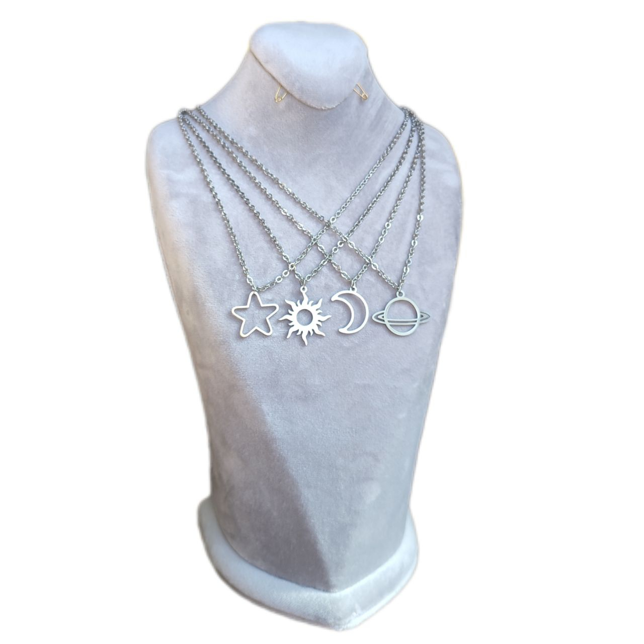 این بسته شامل چهار گردنبند ماه و خورشید و ستاره و زحل است.
